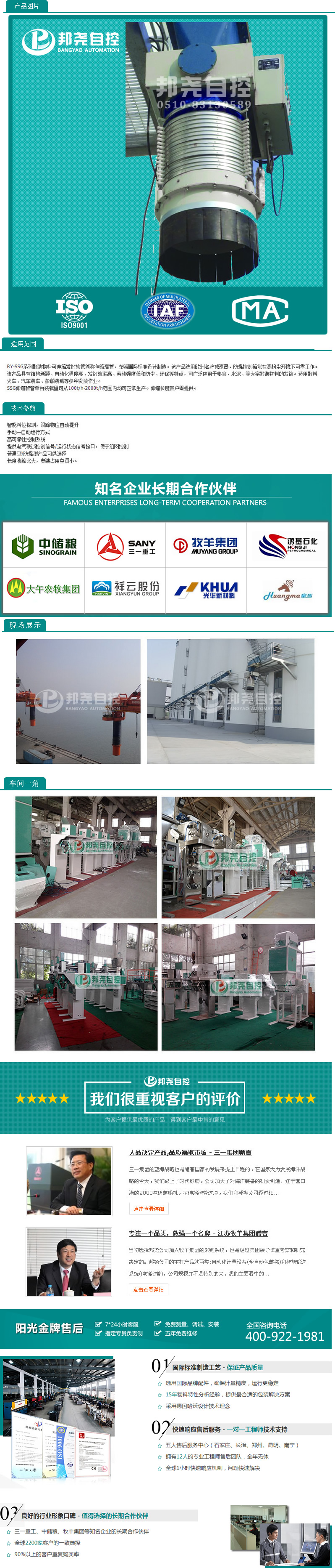 BY-SLG系列散裝物料可伸縮發(fā)放軟管簡(jiǎn)稱伸縮溜管,參照國際標(biāo)準(zhǔn)設(shè)計(jì)制造,可廣泛應(yīng)用于糧食,水泥等大宗散裝物料的發(fā)放。適用散料火車,汽車裝車,船舶裝載等多種發(fā)放作業(yè)。